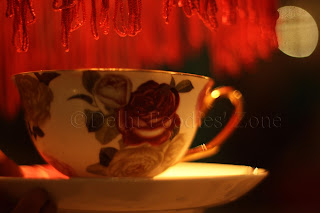 The Dirty Martini at Olive Qutub, which is a Speakeasy-inspired bar recreated blast from the past. Speakeasies used to be illegal bars that thrived in the US in 1920s when there was a national ban on the sale, manufacture, and transportation of alcohol. The entry to these bars was through a lesser known path, often a dirty dingy alley and a clandestine entrance which required passwords to let you in. Since there are no dingy alleys at Olive Qutub, we were led through the kitchen and ushered in through a shabby looking door. A welcome drink called The Chai-Wala (Mulled wine in a mitti ka kulhad), warmed us up to the evening. And as the evening rolled South Side (cocktail made from gin, lemon, sugar, mint) was dished out in intricate tea cups, ideally suited to a High Tea. It was served to keep with the Speakeasy theme of The Dirty Martini. Next up was an excellent Cherry Wood smoked Gin tonic served in a wine glass topped with an Amuse Bouche.