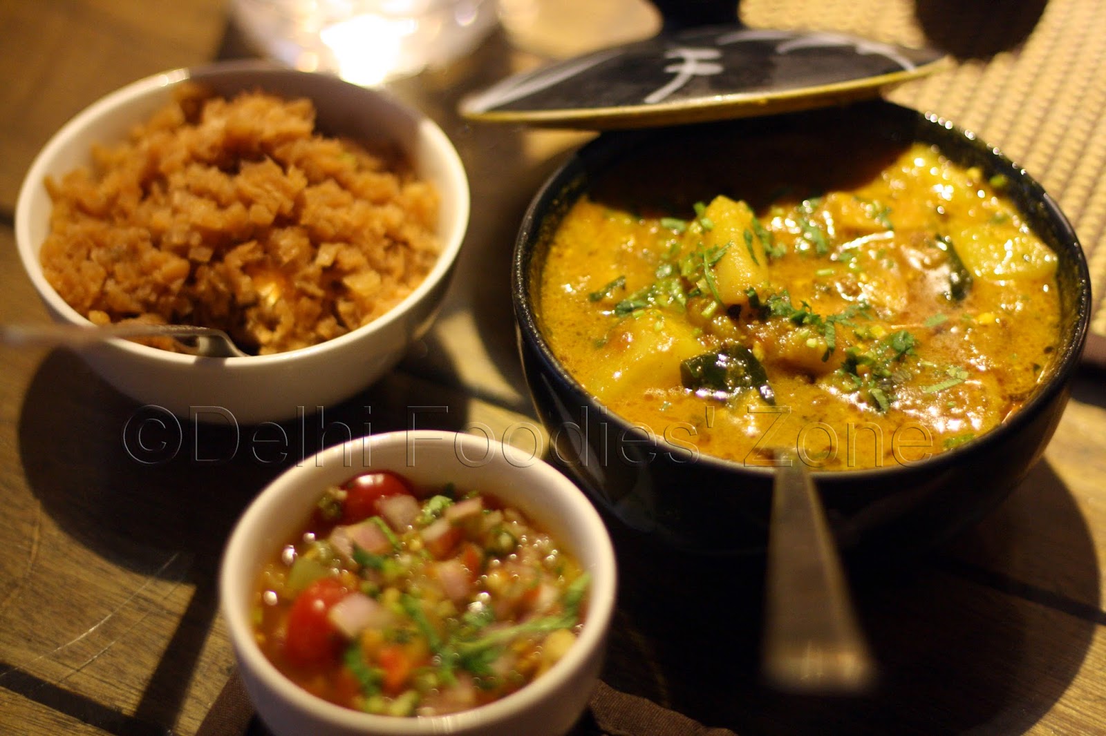 Skeets tried the Veg combo meal in which she opted for Aloo Taama from Sikkim, a dish made with potatoes and bamboo shoot curry. It was a very flavourful curry of potatoes and bamboo shoots with whole peppercorns thrown in. The base of mustard oil lifted its taste manifold. The Masoor dal in the accompanying bowl was simple fare that had a very gratifying ‘I ate my dal chawal’ effect. It was scented with lemongrass which can give your daily dal a whole new perspective. A must try!