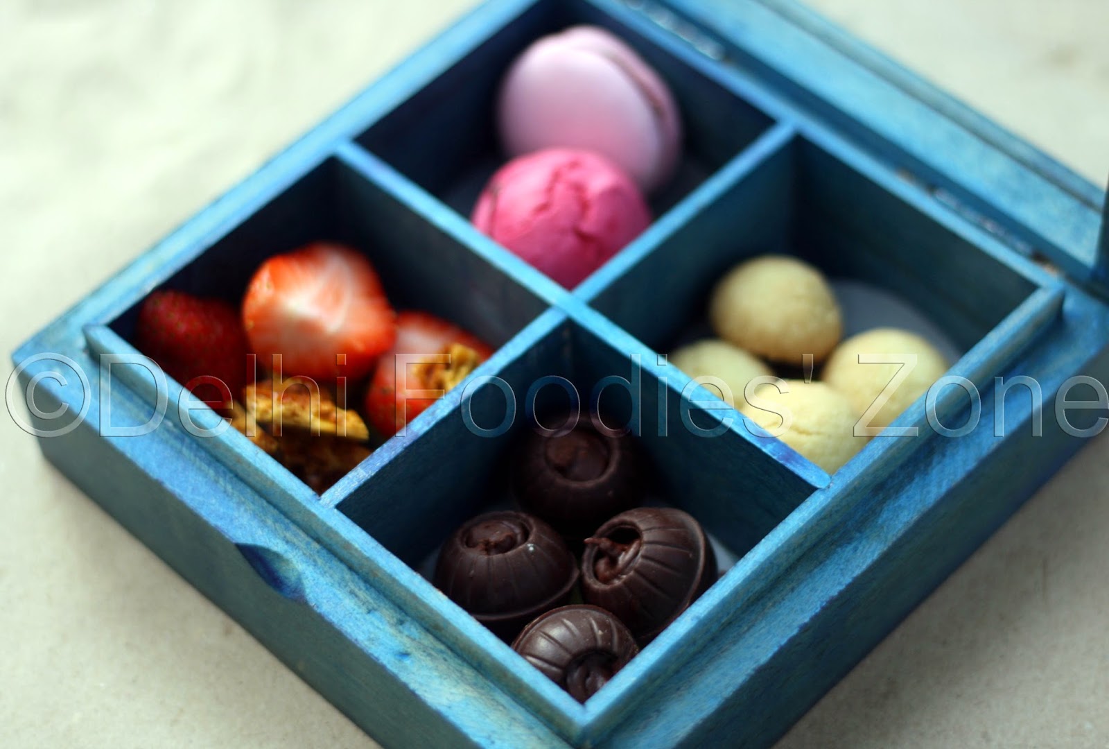The signature dark chocolate fondant was well plated but nothing to write home about. Also, do try their petit fours which come in a striking peacock blue box containing butter cookies, honeycomb, chocolate bombs with Callebaut goodness and a stack of macaroons. Go for it!